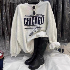 新款 现货韩国东大门刺绣字母美式复古套头圆领毛圈卫衣女上衣卫