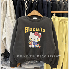 韩国东大门2025冬季新款可爱卡通KT猫印花圆领休闲减龄加绒卫衣女