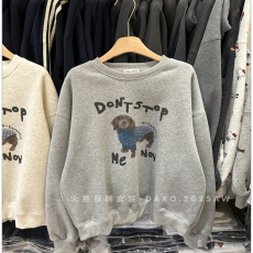 韩国东大门2024春秋新款减龄卡通印花圆领宽松百搭韩版长袖卫衣女