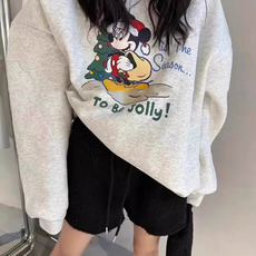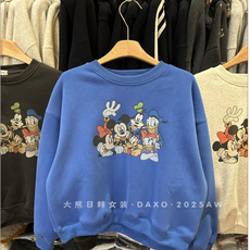 韩国东大门卫衣25秋冬加绒加厚新款圆领可爱卡通高飞米奇印花女潮