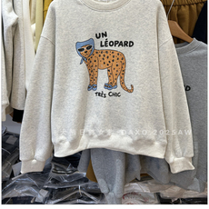 韩国东大门2025秋冬加绒新款圆领卫衣卡通猎豹印花宽松小个子女生