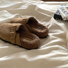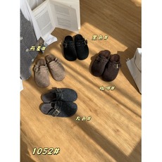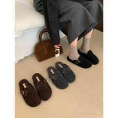 韩国代购2025冬季 气质百搭两穿毛呢加绒半包头毛毛勃肯拖鞋棉鞋