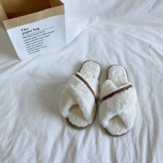 韩国新款店主自留ins春季百搭单品情侣交叉拖鞋男女chic毛毛拖鞋