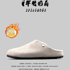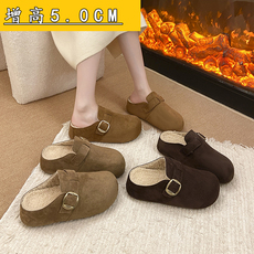 加绒厚底内增高复古一脚蹬勃肯鞋子包头半拖鞋女春季2025新款棉鞋