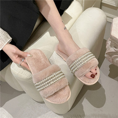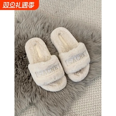 “宅女椰奶球”韩国INS新款皮草毛毛拖鞋女冬季年轻款厚底显腿长