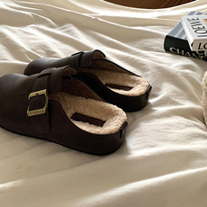 老钱风保暖~小众复古加绒勃肯鞋女ins韩国皮面厚底懒人包头棉拖鞋
