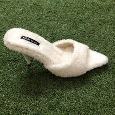 羊羔毛毛绒拖鞋2025韩国东大门模特小姐推荐款高跟尖头一字拖女鞋