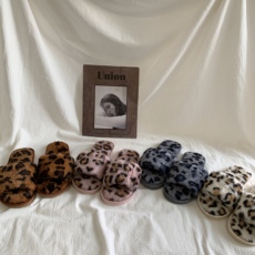韩国新款 店主自留ins网红豹纹毛毛拖鞋chic一脚蹬包头拖鞋女秋冬