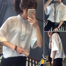 2026夏季白色衬衫女宽松bf风大版棉中长款大码短袖衬衣韩国东大门