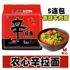 韩式农心辛拉面韩式辣白菜香菇牛肉方便面泡菜汤面泡面五连包