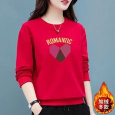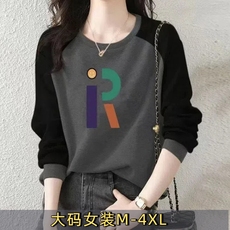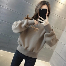 字母圆领套头卫衣女春秋韩版加绒加厚打底衫秋冬长袖大码洋气上衣