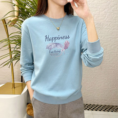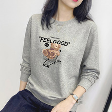 春秋纯棉女装长袖套头卫衣时尚洋气韩版百搭宽松显瘦印花爆款上衣