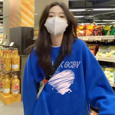 2025春秋冬新款韩版时尚百搭宽松大码纯棉圆领套头卫衣女上衣外套