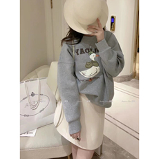 白鹿语韩版头巾小狗印花卫衣2025春季新款宽松圆领休闲套头卫衣女