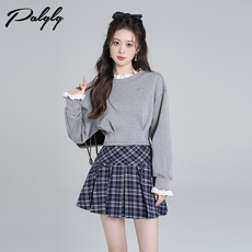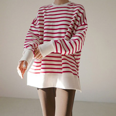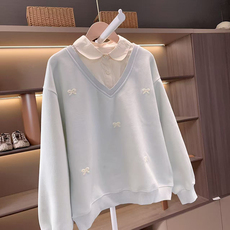 chic减龄慵懒假两件拼接休闲卫衣女春秋韩版圆领宽松长袖套头上衣