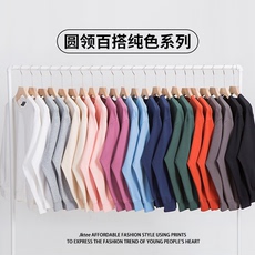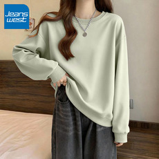 春秋无帽圆领卫衣女2025秋冬新款韩版宽松套头宽松薄款休闲上衣潮