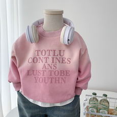 儿童粉色卫衣春秋装2025新款韩版男女童洋气上衣痞帅纯棉套头衫潮