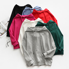 bf原宿风新款纯色卫衣男女套头秋冬季休闲韩版宽松带帽加绒帽衫潮