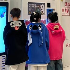bf原宿风潮牌史迪仔刺绣连帽卫衣外套女秋冬季韩版宽松情侣装上衣