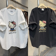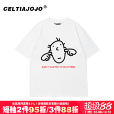 260克重磅纯棉猫半短袖t恤男宽松加肥大码潮流微胖子夏装韩版情侣