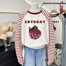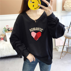 樊樊 十字架梵文口袋刺绣T恤女春秋新款韩版洋气长袖内搭宽松上衣