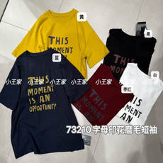 小王家73210秋季新款韩版宽松大码胖mm休闲慵懒风字母磨毛短袖T恤