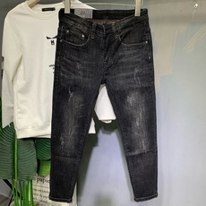 25男显瘦修身弹力水洗黑色98182复古韩版舒适休闲小脚黑灰牛仔裤