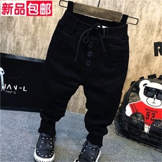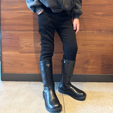 童装男童加绒牛仔小脚修身黑色烟管裤子2025冬季宝宝韩版儿童长裤