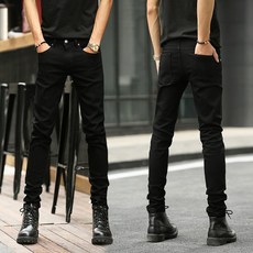 黑色简约弹力修身小脚牛仔裤男青年韩版潮流显瘦铅笔裤微垮锥形裤