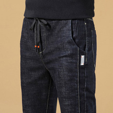 加绒黑色牛仔裤男冬季厚款韩版百搭弹力小脚休闲磨毛抓绒保暖长裤