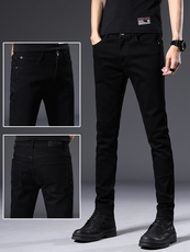 高端纯黑色牛仔裤男秋季韩版潮牌修身小脚弹力百搭休闲裤子男