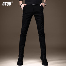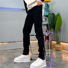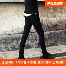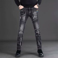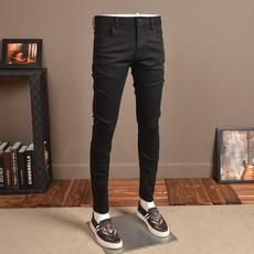 设计款脚口拉链牛仔裤男黑色秋季新款韩版时尚修身小脚弹力休闲裤