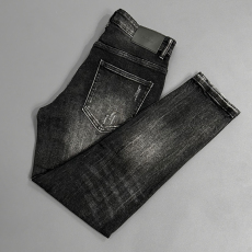 高端潮牌黑色牛仔裤男修身弹力破洞补丁泼墨休闲韩版潮流小脚长裤