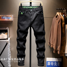 香港高端潮牌黑色牛仔裤男士春秋季韩版潮流修身小脚弹力休闲裤子