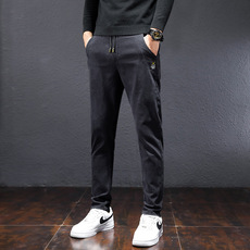 香港潮牌秋季牛仔裤男黑色显瘦修身小脚裤韩版弹力加绒男士长裤子