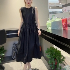 法式褶皱宽松连衣裙女夏季新款韩版休闲设计感抽绳收腰无袖背心裙