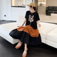 大码300斤夏季新款韩版拼接假两件胖mm连衣裙2024宽松显瘦裙子女