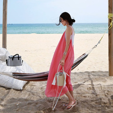 2025夏季新款韩版中长款露美背性感吊带连衣裙女度假大摆沙滩裙子