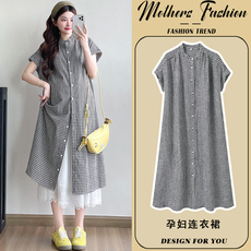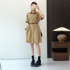 惠衣阁夏季棉质短袖连衣裙衬衫裙韩版宽松休闲衬衫连衣裙职业通勤