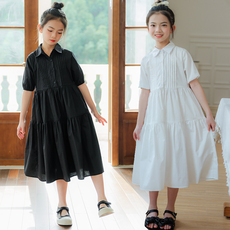 女童连衣裙夏装2025新款韩版洋气中大儿童衬衫裙短袖长款蛋糕裙子