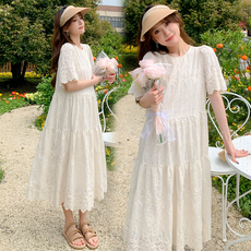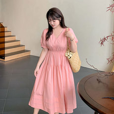 夏装新款短袖荷叶边大摆连衣裙女过膝长款韩版宽松大码休闲时尚裙