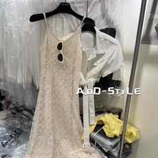 ADD韩版2025春夏新款纯欲显瘦拼接水溶蕾丝设计感吊带连衣裙长裙