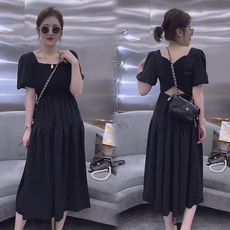 2025年夏季新品女装连衣裙韩版时尚性感收腰显瘦短袖中长款连衣裙