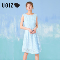 UGIZ夏季新款韩版女装纯色镂空圆领无袖不规则连衣裙女UBOC603-5