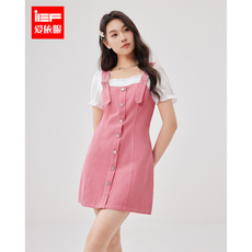 甜美垂坠感连衣裙女夏季新款小个子韩版气质女装短袖高级多巴胺裙