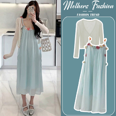 女童连衣裙夏套装2025新款洋气背心背带裙两件套纯棉儿童裙子韩版