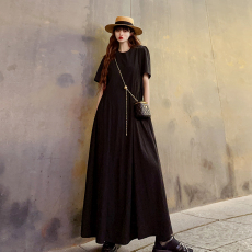 夏季新款简约赫本长款及踝连衣裙超A小众设计感韩版宽松显瘦长裙
