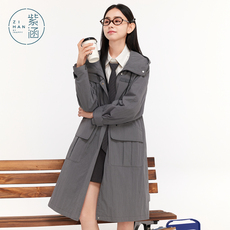 紫涵工装风中长款连帽风衣女秋季新款通勤大口袋宽松休闲过膝外套