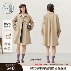 紫涵中长款翻领风衣女秋季新款通勤英伦风气质小个子休闲过膝外套