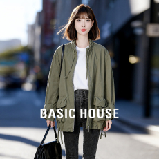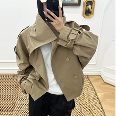 宅宅athome//米兰画报 韩系立领短款风衣经典宽松收腰外套
